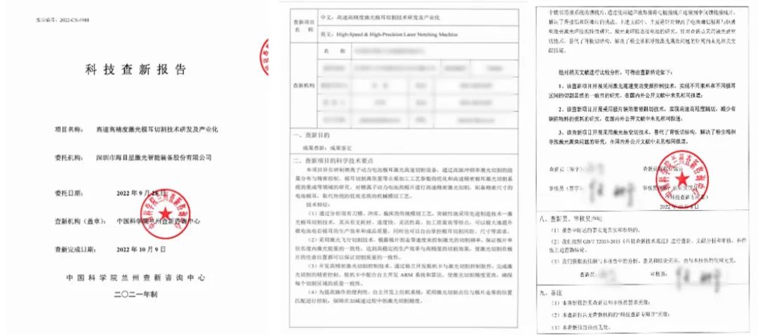 《高速高精度激光極耳切割技術研發及產業化》科技查新報告